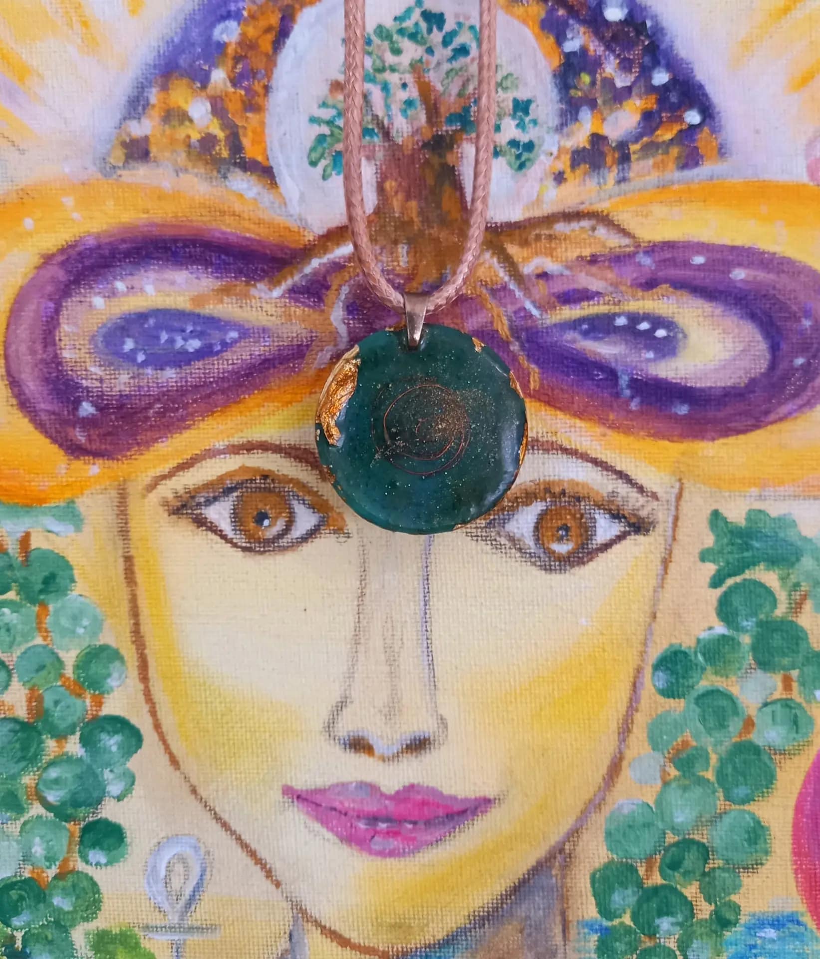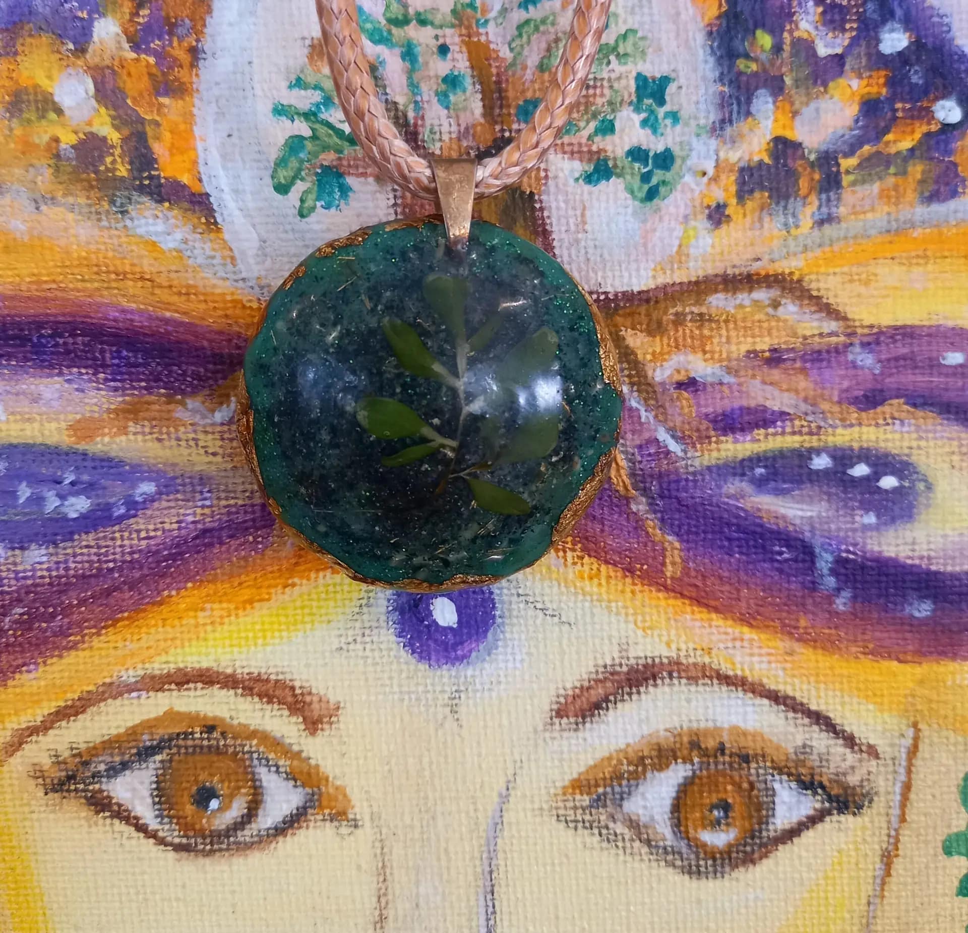 שרשרת תיליון אנרגטי אורגונייט orgonit עם פיגם (רודה/פיג'אן) צמח מרפא לשמירה והגנה