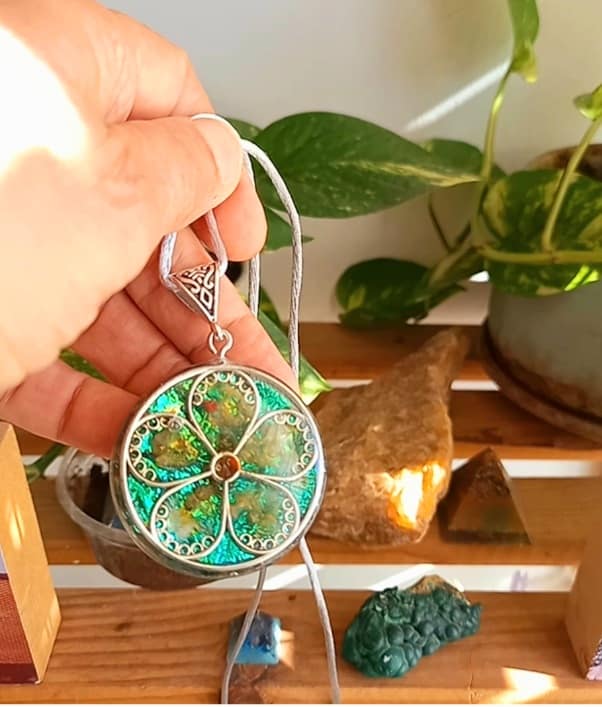 תליון אורגונייט פרח משובץ אבני פרידות וסיטרין בתוך עלי כותרת