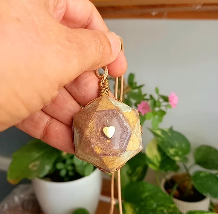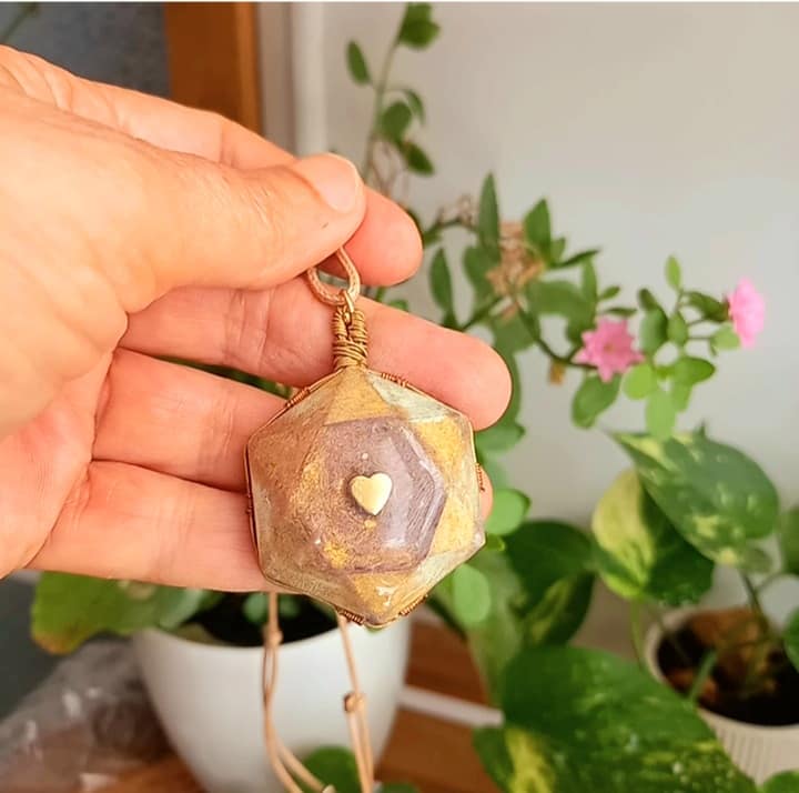 תליון אורגונייט המרכבה מבורך באהבה שירה וצלילים מרפאים עטופים חומר אפוקסי אורגני איכותי ברמה גבוהה קריסטלים ו- ארבע סוגי מתכות :