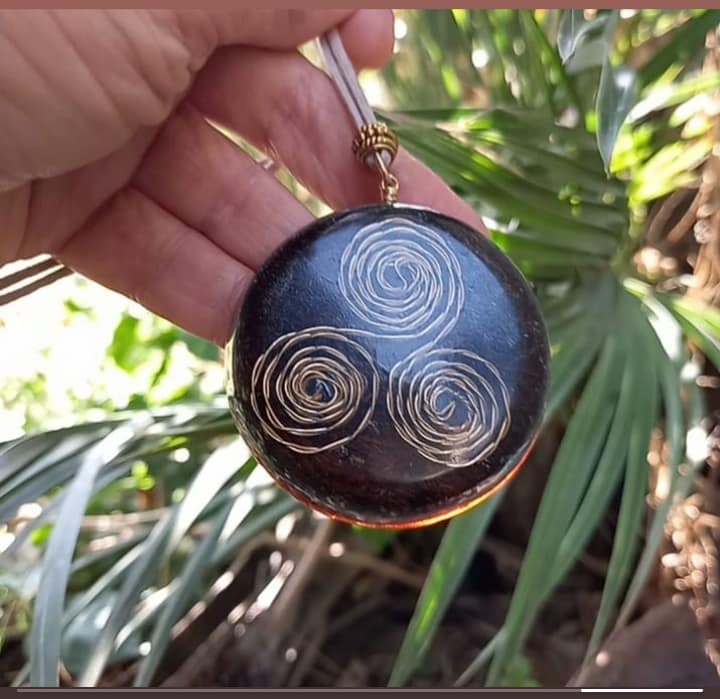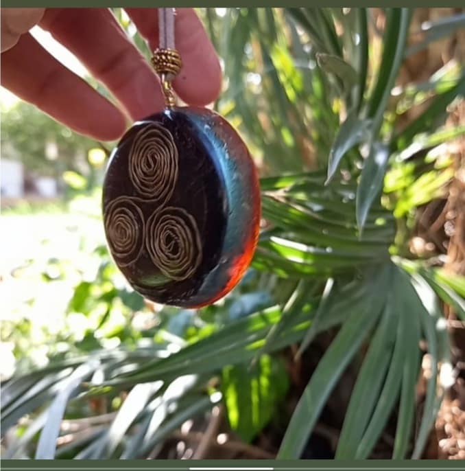 תליון אנרגטי אורגונייט טריסקל מבורך באהבה שירה וצלילים מרפאים עטופים שרף אפוקסי באיכות גבוהה מאוד.