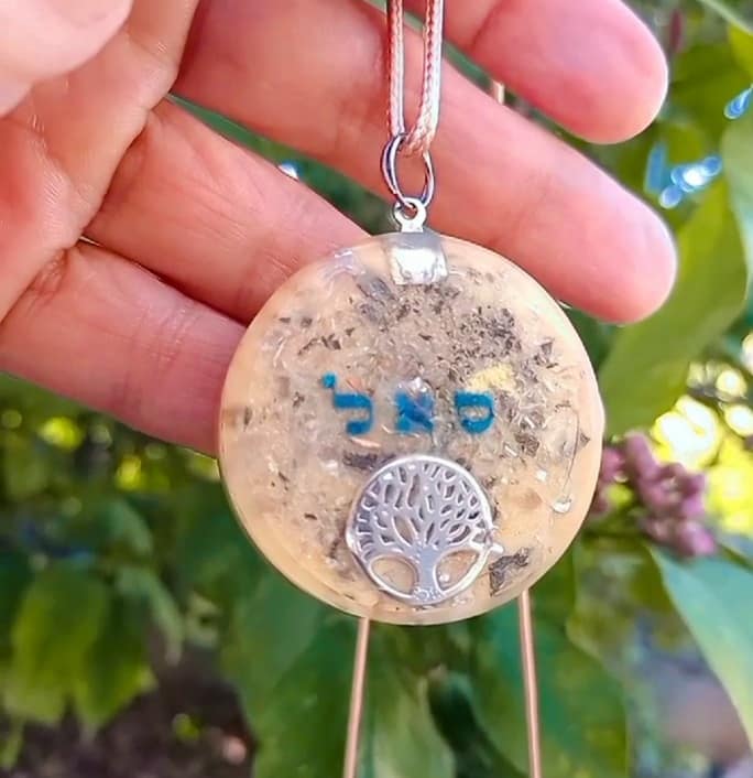 תליון מרפא אורגונייט orgonit עם הטבעה של המילה ס.א.ל מתוך ע"ב שמות השם