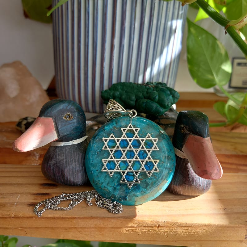 תליון אורגונייט מגן דוד עם קריסטל לפיסלזולי