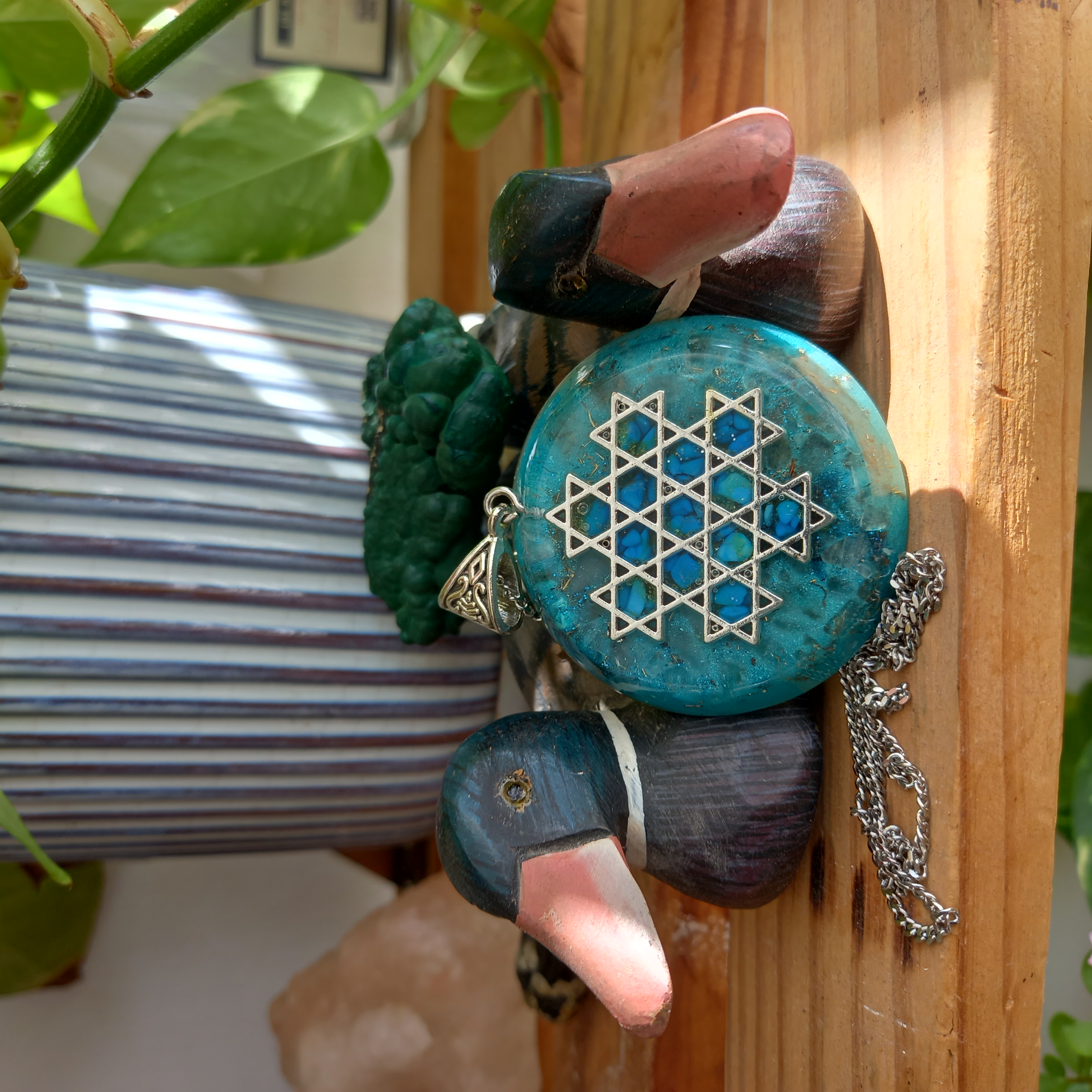 תיליון אורגונייט 13 מגני דודמשובץ טורקונייט טורקיז, קוורץ, רוז קוורץ, מונסטון ואקומריןמבנה אנרגיה מקודשת מיוחד,איזון וחיבור שמים וארץ בין רוח וחומר. בקבלה מייצג את שבע
