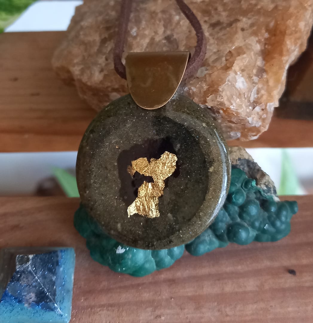 תליון אורגונייט ואבני טורמלין, קוורץ ורוז קוורץ ועפר מדורה של שירה מקודשת, אבקת ציפורן, קינמון, מרווה מור ולבונה לחיזוק שדה הגנה סביב הגוף לתגבור אנרגטי
